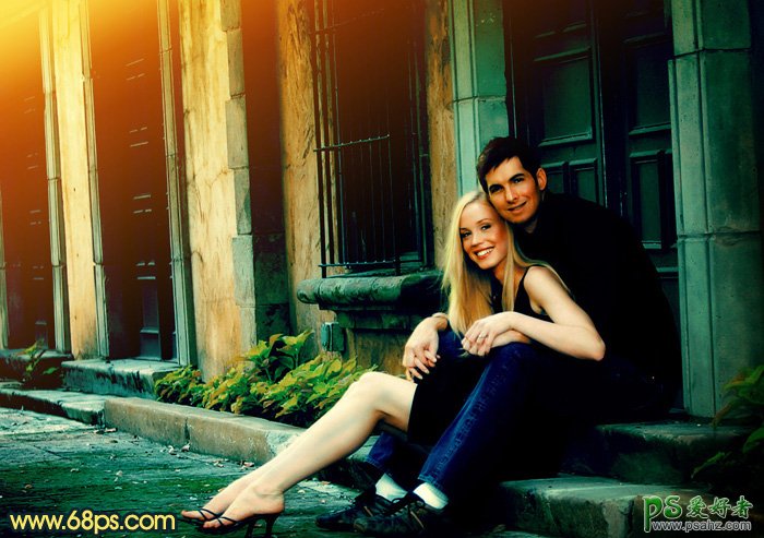 Photoshop给街头自拍的欧美情侣艺术照调出唯美的暗青色,照片中的欧美美女长相甜美,雪白的玉腿美足更是迷人,通过设计师的后期调色让这对性感的情侣照变得更加温馨,喜欢的朋友们练习一下吧!