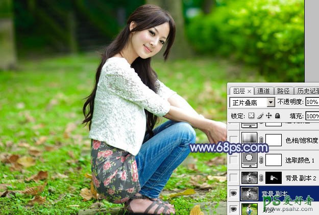1、打开素材图片,按Ctrl + J 把背景图层复制一层,按Ctrl + Shift + U 去色,把混合模式改为“正片叠底”,不透明度改为:10%,效果如下图。这一步把图片稍微调暗。