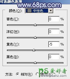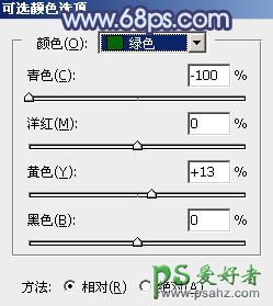 5、创建可选颜色调整图层,对红、黄、绿、青,中性色进行调整,参数设置如图8 - 12,效果如图13。这一步给图片增加青蓝色。