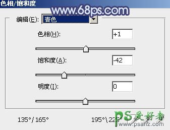 6、创建色相/饱和度调整图层,对黄、绿,青进行调整,参数设置如图14 - 16,效果如图17。这一步给图片增加暗青色。