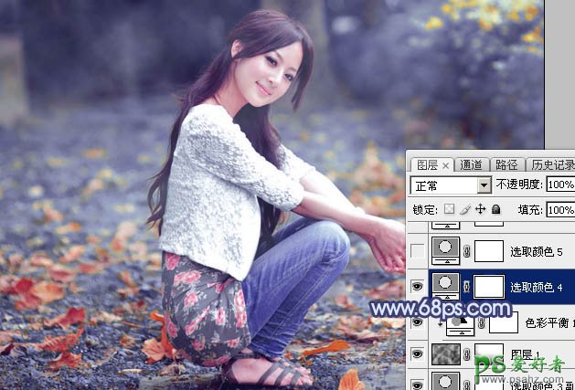12、创建可选颜色调整图层,对红、黄、青、蓝,白进行调整,参数设置如图30 - 34,效果如图35。这一步给图片增加橙红色,同时把蓝色转为蓝紫色。