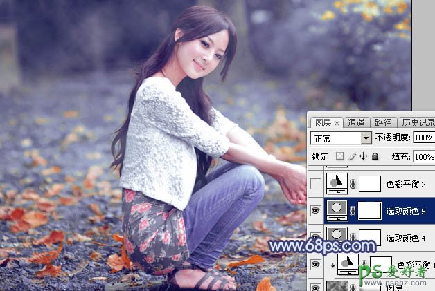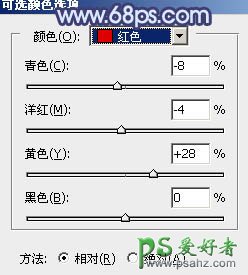 13、创建可选颜色调整图层,对红、黄、蓝、洋红、白,黑进行调整,参数设置如图36 - 41,效果如图42。这一步微调图片中的暖色及暗部蓝色。