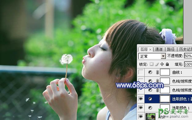 2、按Ctrl + J 把当前可选颜色调整图层复制一层,不透明度改为:50%,效果如下图。