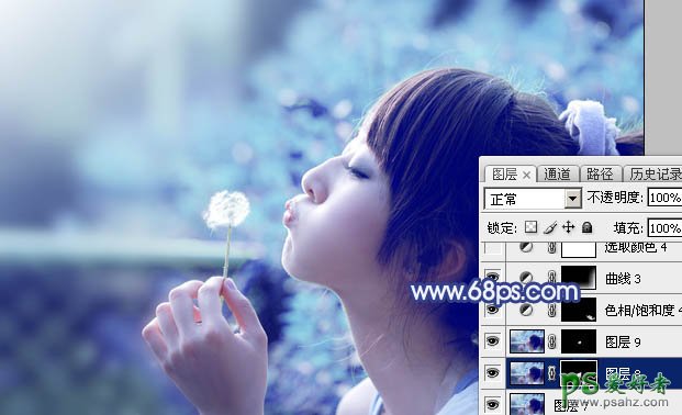 15、新建一个图层,盖印图层,简单给人物磨一下皮,再把右下角部分用曲线调暗一点,效果如下图。