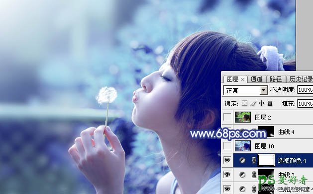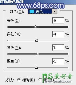 16、创建可选颜色调整图层,对青色,白色进行调整,参数及效果如下图。这一步微调图片中的青色及高光颜色。