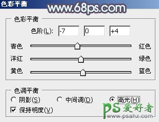 7、按Ctrl + Alt + 2 调出高光选区,创建色彩平衡调整图层,对高光进行调整,参数及效果如下图。这一步给高光部分增加淡蓝色。