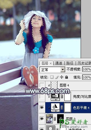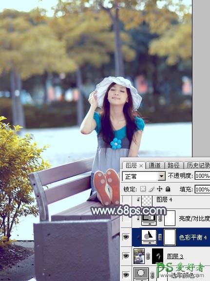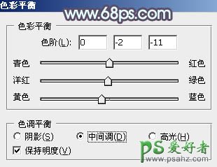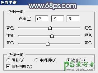 11、创建色彩平衡调整图层,对中间调,高光进行调整,参数设置如图29,30,确定后把蒙版填充黑色,用白色画笔把人物脸部及肤色部分擦出来,效果如图31。
