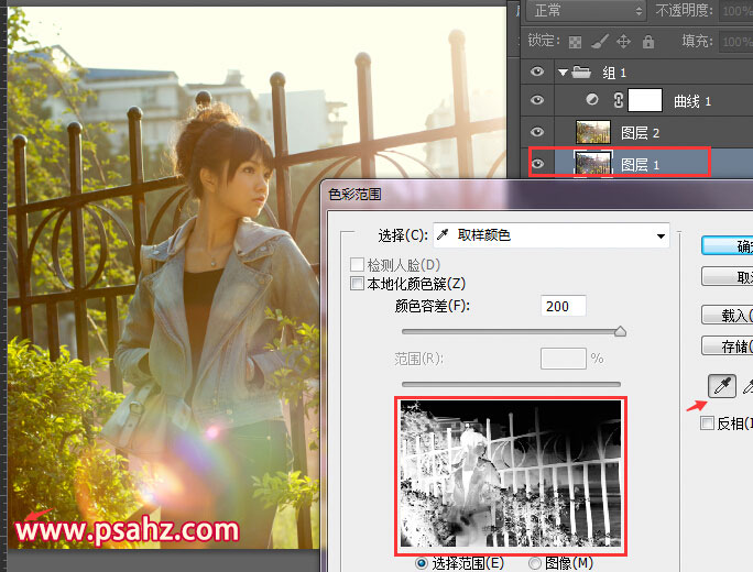 3、选择图层原图,选择/色彩范围/吸取画面暗区域、为画面中按暗区域提亮,创建曲线层调亮。具体参数如图: