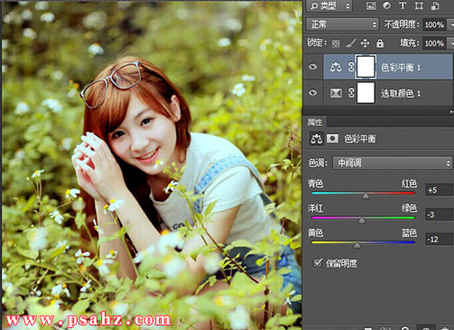 Photoshop给植物花丛中的少女照片调出清纯可爱唯美暖色调