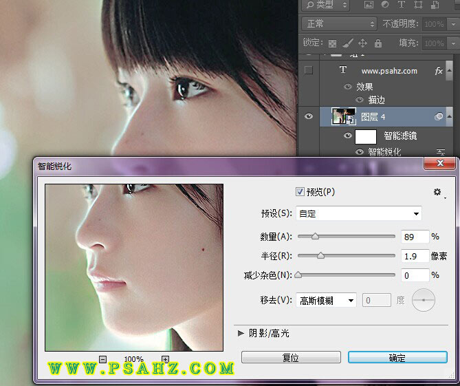 6、到这里基本要完成了,“最后锐化清晰一下人物,设置如图: