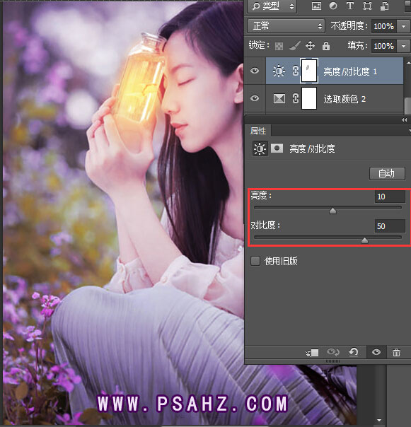 6、画面有点发 灰。创建“亮度对比度“,亮度-10对比度-50