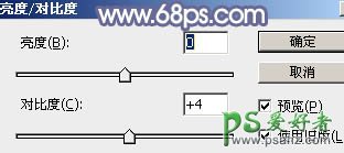 16、创建亮度/对比度调整图层,适当增加对比度,参数及效果如下图。