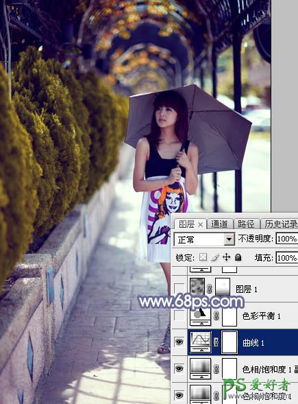 Photoshop给街景自拍的性感美女唯美意境图片调出浓厚的秋季色彩