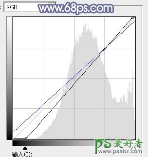 6、创建曲线调整图层,对RGB及蓝色通道进行调整,参数及效果如下图。这一步增加图片明暗对比,同时给图片增加蓝色。