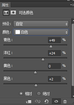 3、创建、可选颜色调整层、设置黄色、青色、白色、调整人物皮肤以及肤色。