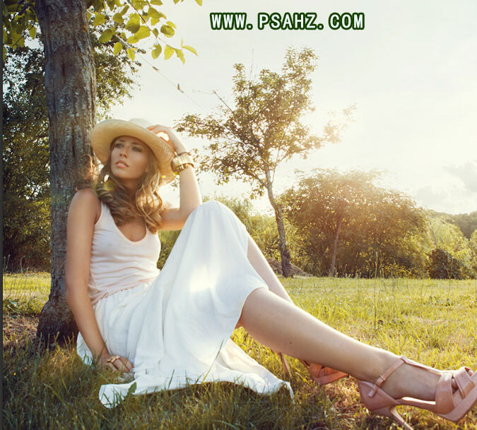 Photoshop给发灰 对比不足 色彩平淡的欧美女人照片调出阳光暖色