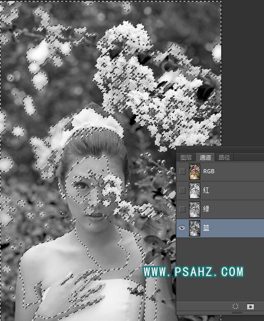 大家好,今天教程是一例PS美女照片后期调色教程,我们学习把一张拍摄发黄、发暗、颜色脏乱照片调成明快皮肤通透美女色调。喜欢同学赶紧一块来学习调色吧! 原图 最终效果图 具体学习步骤: 1、打开素材,将人物复制一层,选择蓝通道,载入选区,反向