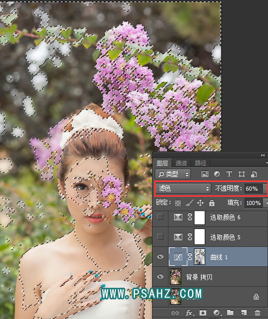 混合模式-;滤色-不透明度-60 提这一步是提亮暗部。
