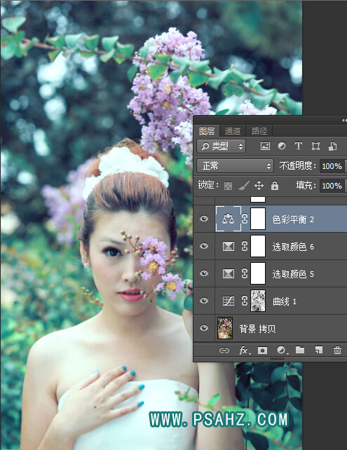 4、创建,色彩平衡调整层,调整 阴影、中间调、高光、