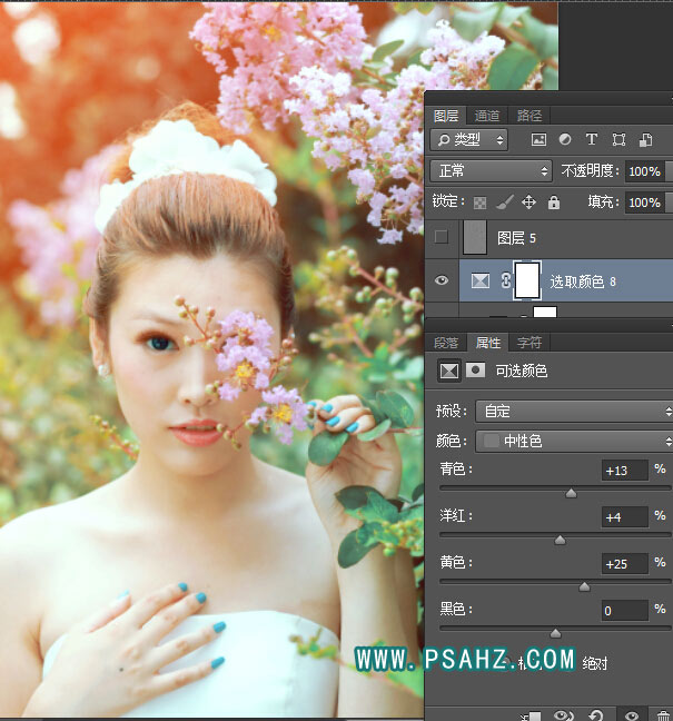 7、创建,新可选颜色调色层,红色、黄色、中性色,加以调整。