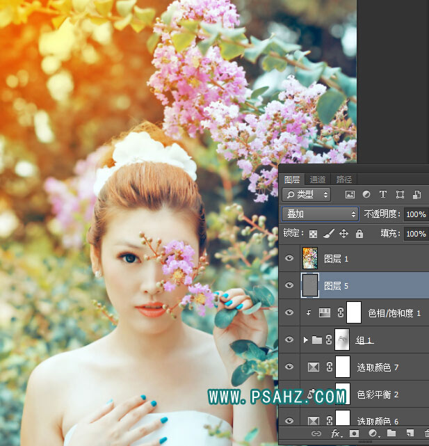 Photoshop把一张黄色调漂亮女生照片调成阳光冷青色效果