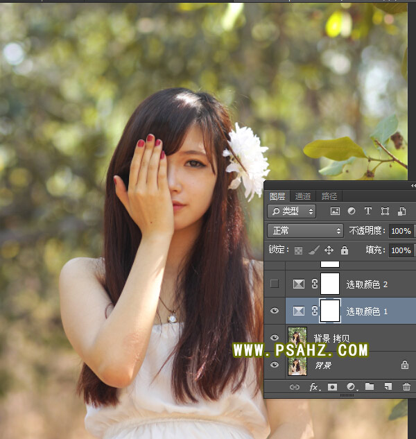 PS美女照片后期调色教程:把一张绿色偏黄美女照片打造成青色...
