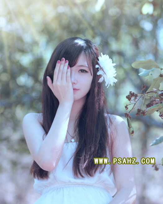 Photoshop把一张黄色调漂亮女生照片调成阳光冷青色效果