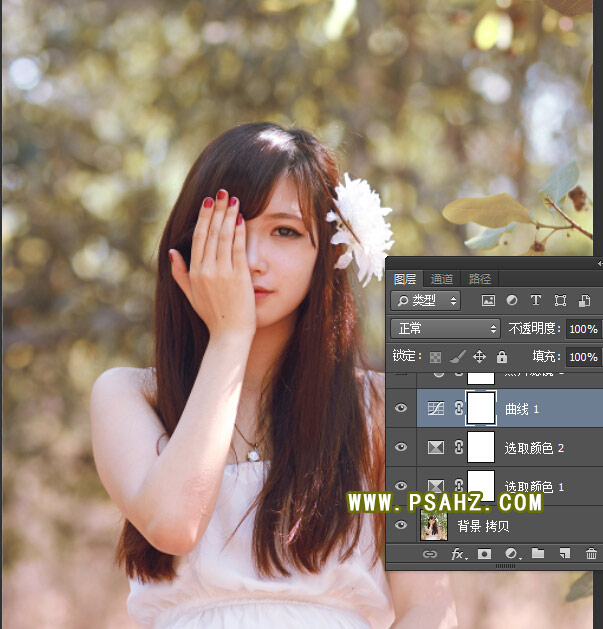 Photoshop把一张黄色调漂亮女生照片调成阳光冷青色效果