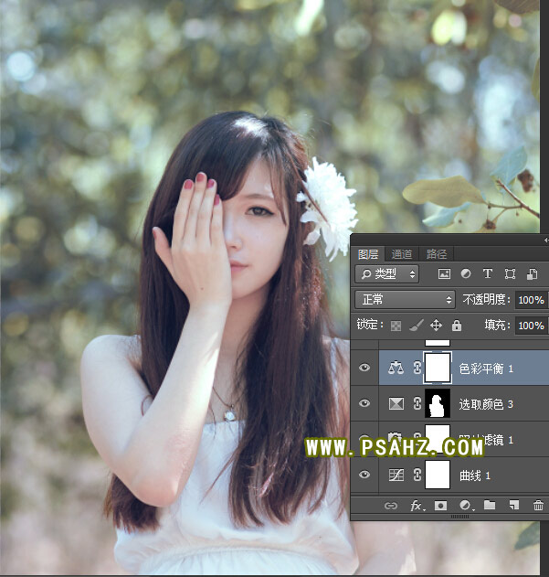 PS美女照片后期调色教程:把一张绿色偏黄美女照片打造成青色...