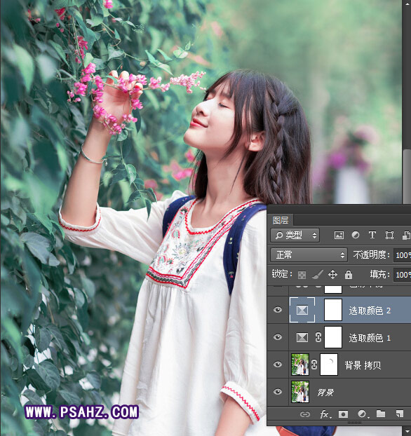 Photoshop漂亮美女照片后期调色:把花景下可爱美女调成梦幻紫色