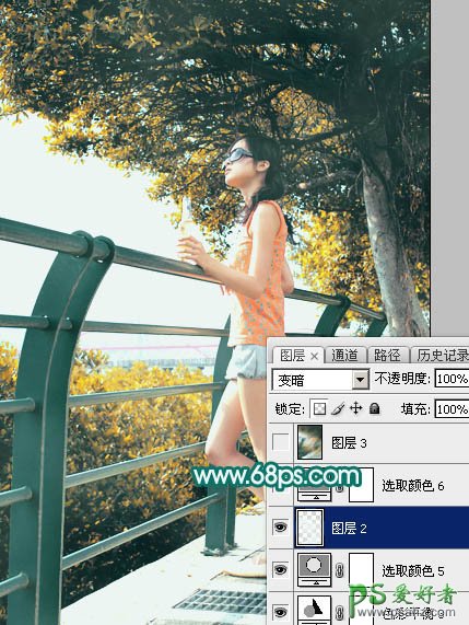 13、按Ctrl + Alt + 2 调出高光选区,创建纯色调整图层,颜色设置为淡绿色:#EDF5F2,确定后把混合模式改为“变暗”,效果如下图。这一步给图片高光部分增加淡绿色。