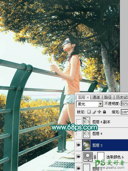 14、新建一个图层,按Ctrl + Alt + Shift + E 盖印图层,选择菜单:滤镜 > 模糊 > 动感模糊,角度设置为45度,距离设置为160,确定后把混合模式改为“柔光”,不透明度改为:50%,效果如下图。这一步把图片柔化处理。