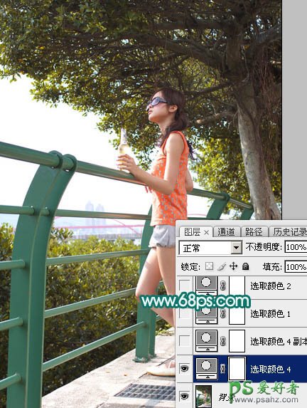 ps美女照片后期调色:给绿树下的清纯女孩儿调出唯美的橙黄色