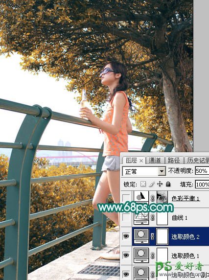 4、创建可选颜色调整图层,对红、黄、白进行调整,参数设置如图9 - 11,确定后把图层不透明度改为:50%,效果如图12。这一步把图片中的暖色调淡一点,并加强高光颜色。