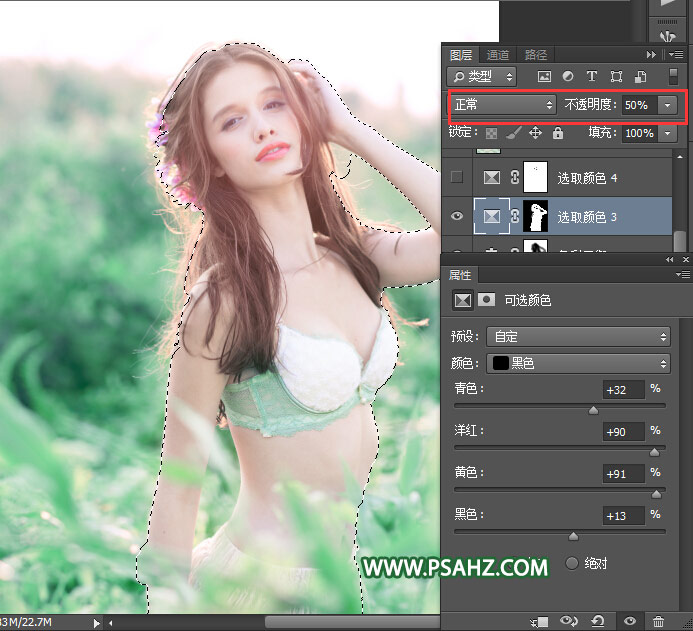 Photoshop给性感的欧美内衣美女照片调出清新柔美青色效果