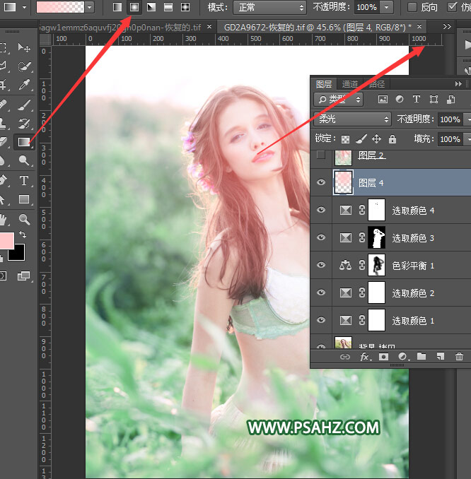 Photoshop美女图片调色教程:给外景美女照片调出甜美的粉黄...