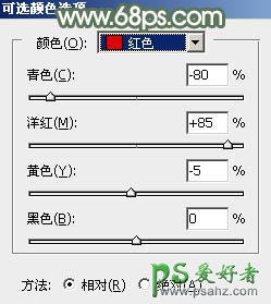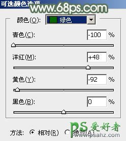 1、打开素材图片,创建可选颜色调整图层,对红、黄、绿、青进行调整,参数设置如图1 - 4,效果如图5。这一步主要把图片中的绿色转为黄褐色,并把红色调鲜艳一点。