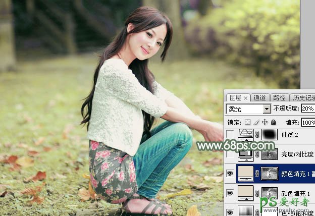5、按Ctrl + J 把当前纯色调整图层复制一层,混合模式改为“柔光”,不透明度改为:20%,效果如下图。