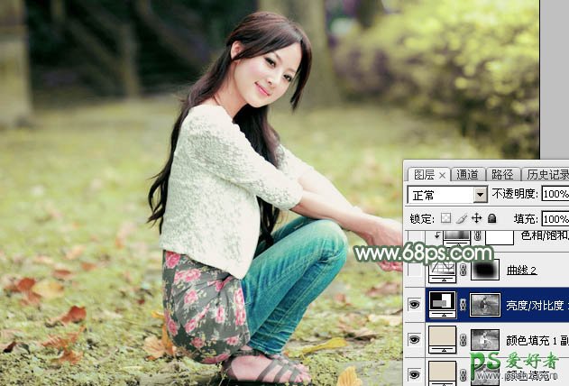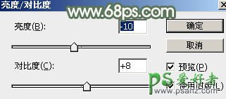 6、按Ctrl + Alt + 2 调出高光选区,按Ctrl + Shift + I 反选,然后创建亮度/对比度调整图层,参数及效果如下图。这一步把暗部稍微加深一点,并增加对比度。