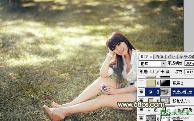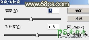 9、按Ctrl + Alt + 2 调出高光选区,按Ctrl + Shift + I 反选,然后创建亮度/对比度调整图层,参数及效果如下图。这一步增加暗部明暗对比。