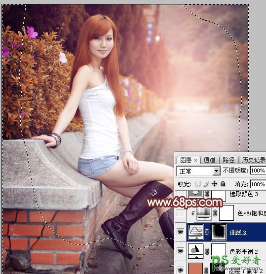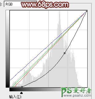 12、创建曲线调整图层,对各通道进行调整,参数设置如图26,确定后把蒙版填充黑色,用白色画笔把边角部分擦出来,效果如图27。这一步给图片增加暗角。