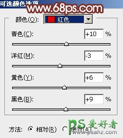 13、创建可选颜色调整图层,对红、黄、杨红、白、黑进行调整,参数设置如图28 - 32,效果如图33。这一步微调图片中的暖色及高光暗部颜色。