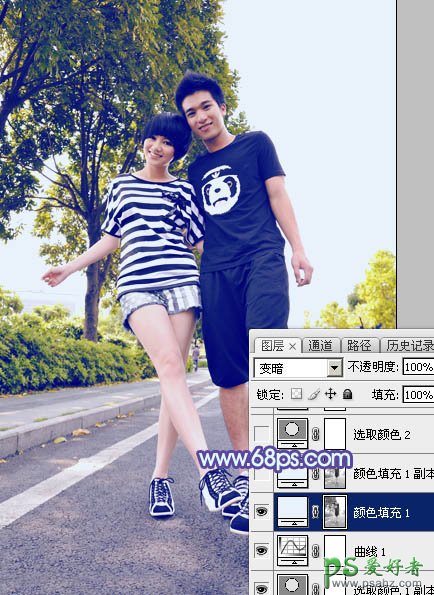 4、按Ctrl + Alt + 2 调出高光选区,创建纯色调整图层,颜色设置为淡蓝色:#E8F2FA,确定后把混合模式改为“变暗”,效果如下图。这一步给图片高光部分增加淡蓝色。