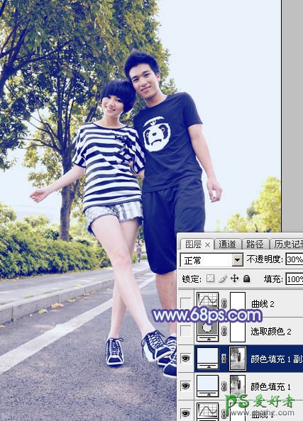 5、按Ctrl + J把当前纯色调整图层复制一层,混合模式改为“正常”,不透明度改为:30%,效果如下图。这一步给图片增加淡蓝色。