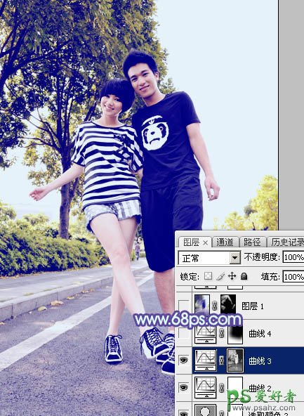8、按Ctrl + Alt + 2 调出高光选区,按Ctrl + Shift + I 反选,然后创建曲线调整图层,对各通道进行调整,参数设置如图23 - 26,效果如图27。这一步增加暗部明暗对比,并增加蓝色。