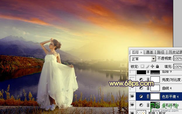 11、创建色彩平衡调整图层,对阴影,高光进行调整,参数及效果如下图。这一步把图片主色调清爽一点。