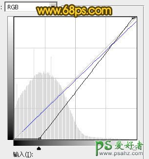 3、按Ctrl + Alt + 2 调出高光选区,按Ctrl + Shift + I 反选,然后创建曲线调整图层,对RGB,蓝通道进行调整,参数及效果如下图。这一步把图片暗部加深,并增加淡黄色。
