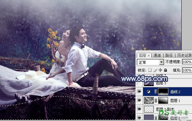 9、创建曲线调整图层,对RGB通道进行调整,参数设置如图20,确定后把蒙版填充黑色,用白色画笔把底部区域擦出来,如图21。这一步给底部增加暗部。