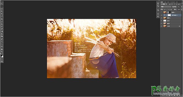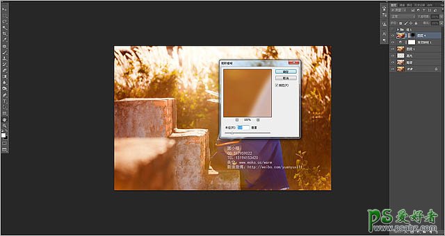6、然后再次盖印一层,高斯模糊一下,让整个画面变的更柔一些,把人物的位置擦出来。