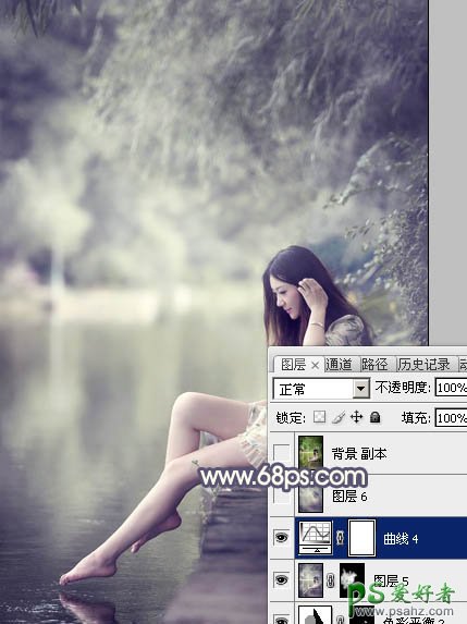 10、新建一个图层,按Ctrl + Alt + Shift + E 盖印图层,用模糊工具把背景部分局部适当模糊处理,效果如下图。
